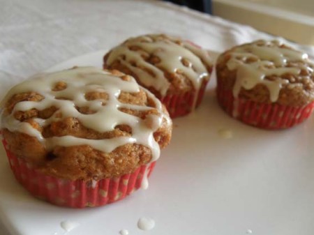 I mixed about a cup of icing (powdered) sugar and added the juice a little at a time to get the desired drizzling quality.