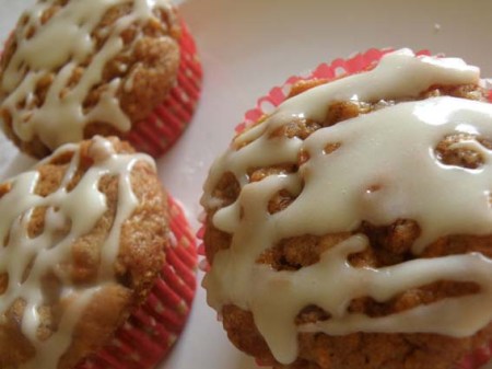 The icing was made using a mixture of icing sugar and orange juice (pineapple is also delicious)