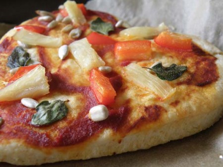 1. Pizza is my son’s absolute favorite, too. We usually top his with tomato, mushroom, and thinly sliced zucchini (courgette) over some garlic & herb flavored Tofutti Better than Cream Cheese. (Great stuff, if it’s available where you are.)