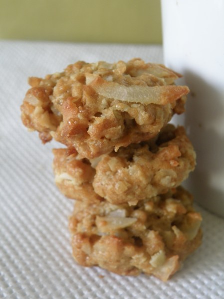 ANZAC stands for “Australian and New Zealand Army Corps” and it is believed wives used to make the cookies and send them out to their husbands fighting in WW1. The ingredients used kept well during their transportation to the fighting soldiers and the fact they do not contain eggs helped them keep longer. Also the fact they do not contain eggs is good news for me because it makes adapting them pretty easy.