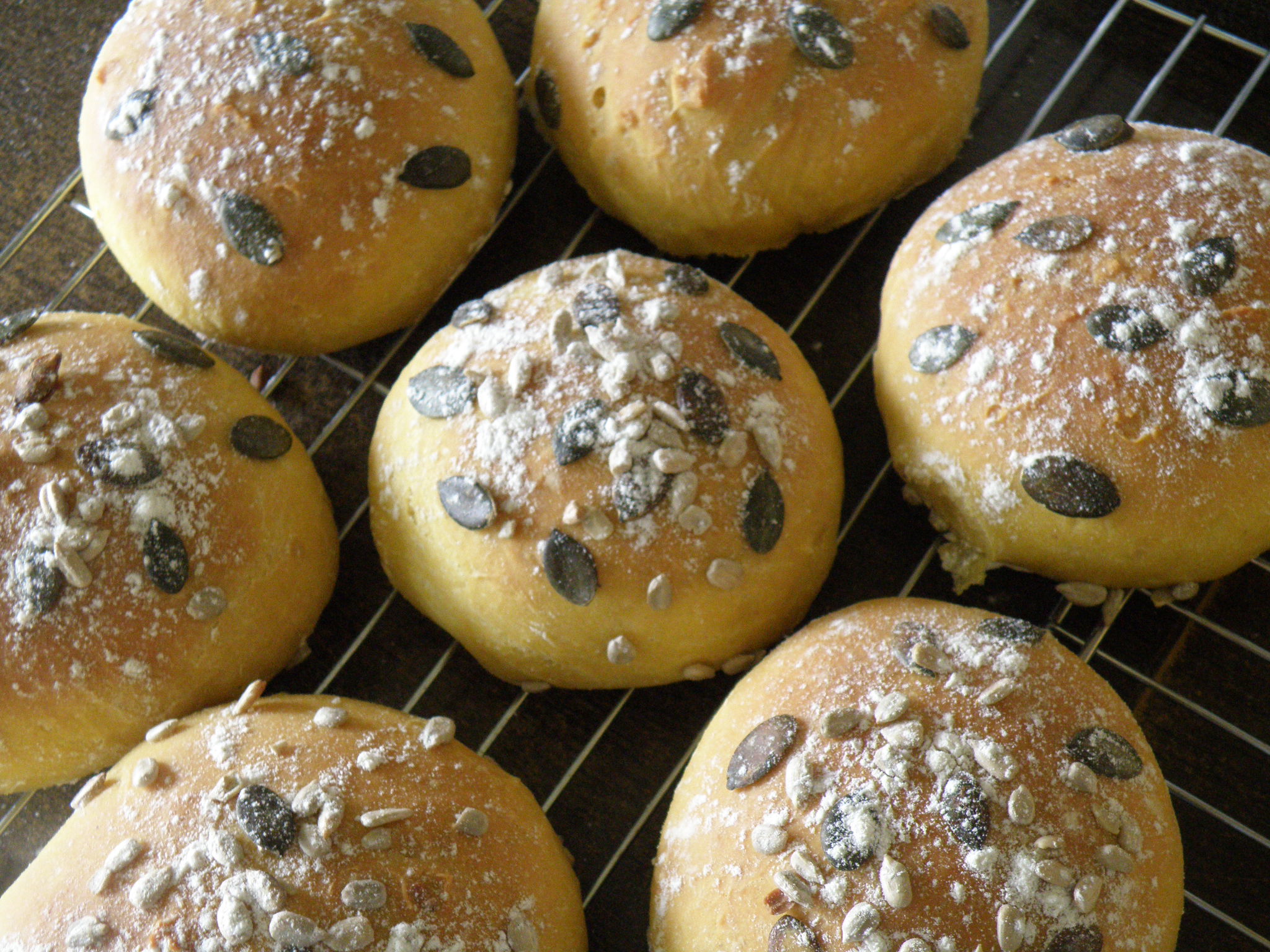 I made delicious Pumpkin Bread and Rolls, Pumpkin and Banana Muffins, Cookies, Pumpkin Butter and Pumpkin Pancakes  as well as adding it to a few savoury things along the way like soup and sauces. Below I will share the recipes I came up with and under that will add the links to other people’s recipes I have tried out.