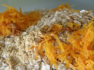 Measure out the porridge oats then stir in the orange zest, salt, cinnamon and ginger.