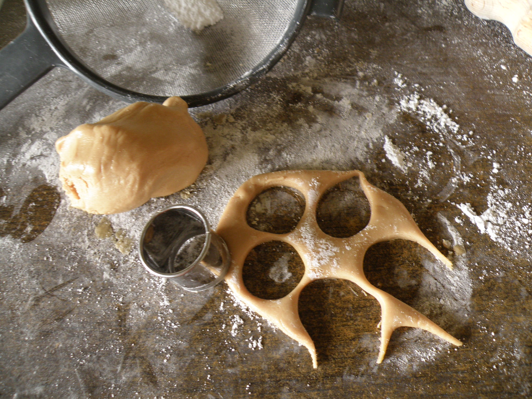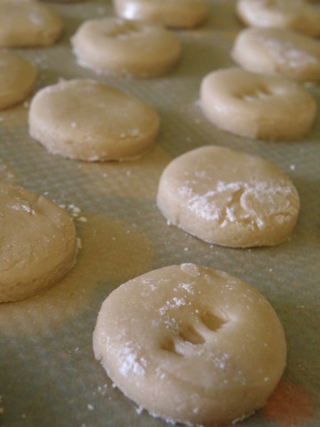 Roll out and cut into shapes or roll into balls and flatten gently with a fork, (or whatever takes your fancy, be creative). If you roll out and cut into shapes as I did you will have to make sure the surface is kept very well dusted with icing sugar or the dough will stick.