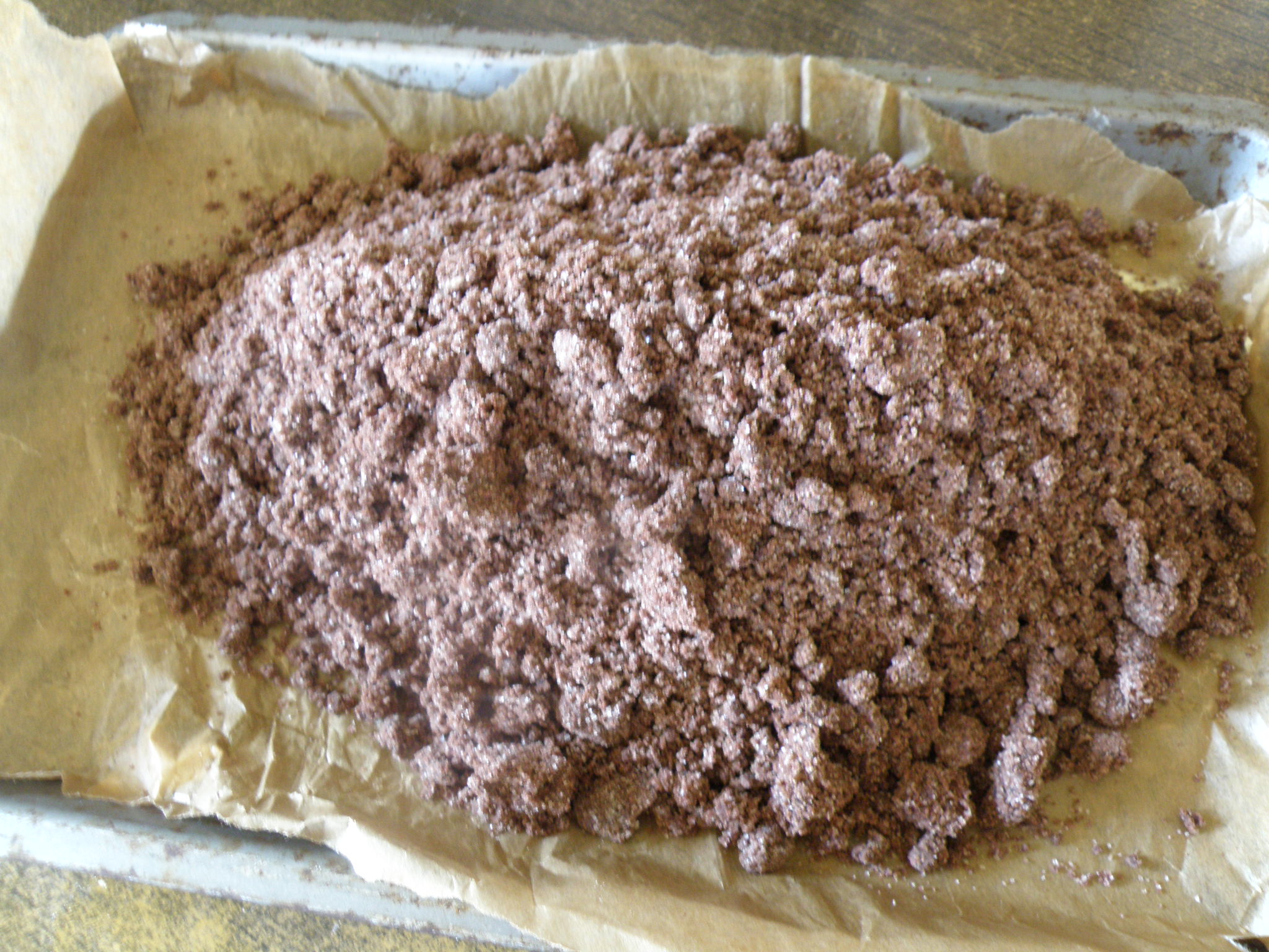 Pour into a brownie tin lined with greaseproof and push down with your hands until level.