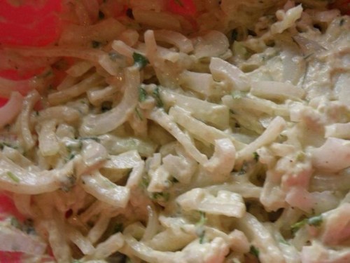 This is a good follow-on from my last recipe and would make a lovely side dish. I absolutely love onion bhajis, normally I make them in a more traditional way by using gram (chickpea) flour. But since my son has allergy to beans, peas and possibly lentils I attempted with “normal” flour instead.
