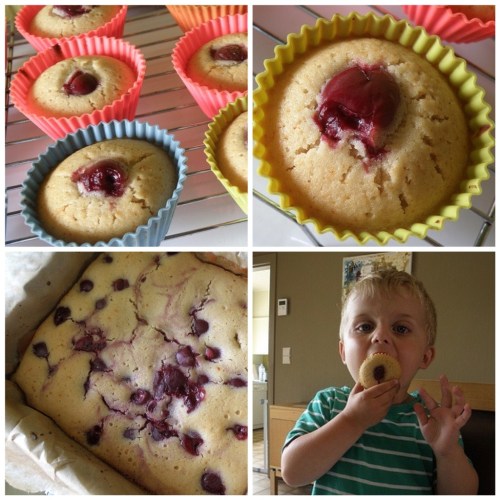 I really like this recipe, I just made a lemon drizzle to go over and it is lovely, will add the sliced photos later as I was surprised who lovely it looked sliced, especially considering the way my son poured the whole bowl of cherries in instead of doing it daintily like I showed him! Haha