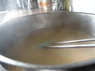 This is a very simple recipe but one that takes time. You basically want to simmer and reduce the milk until you are left with a golden, thick, syrupy sauce. You can also choose to reduce further to achieve a more spreadable even thicker consistency but I had drizzling visions so went for a thick golden syrup like consistency.