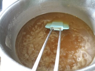 After at least 2 hours the mixture will become a deep caramel colour and thick like honey and will coat a metal spoon which means it is ready. The mixture will thicken more as it sets so if you decide you want to reduce further to make an even thicker consistency then remember to keep stirring frequently at this point to make sure it doesn't stick and burn the bottom of the pan. *