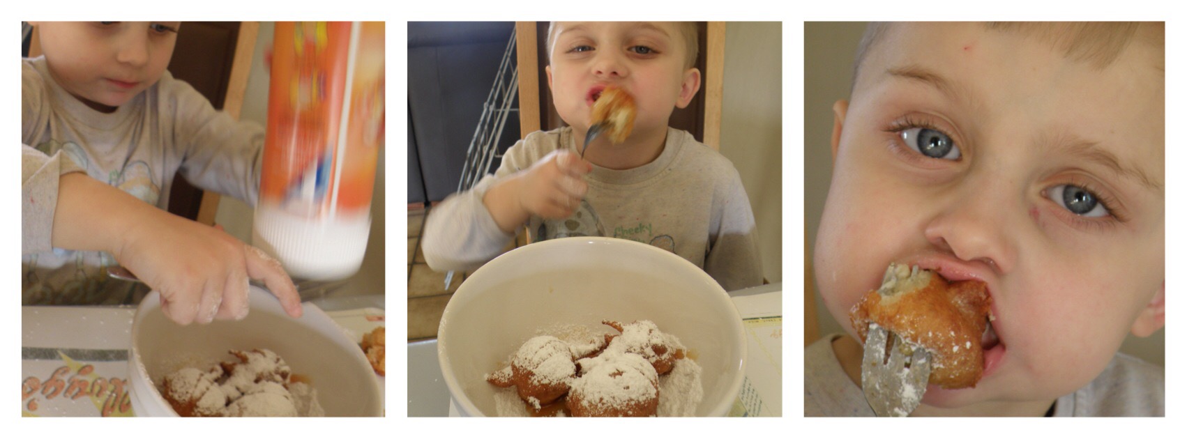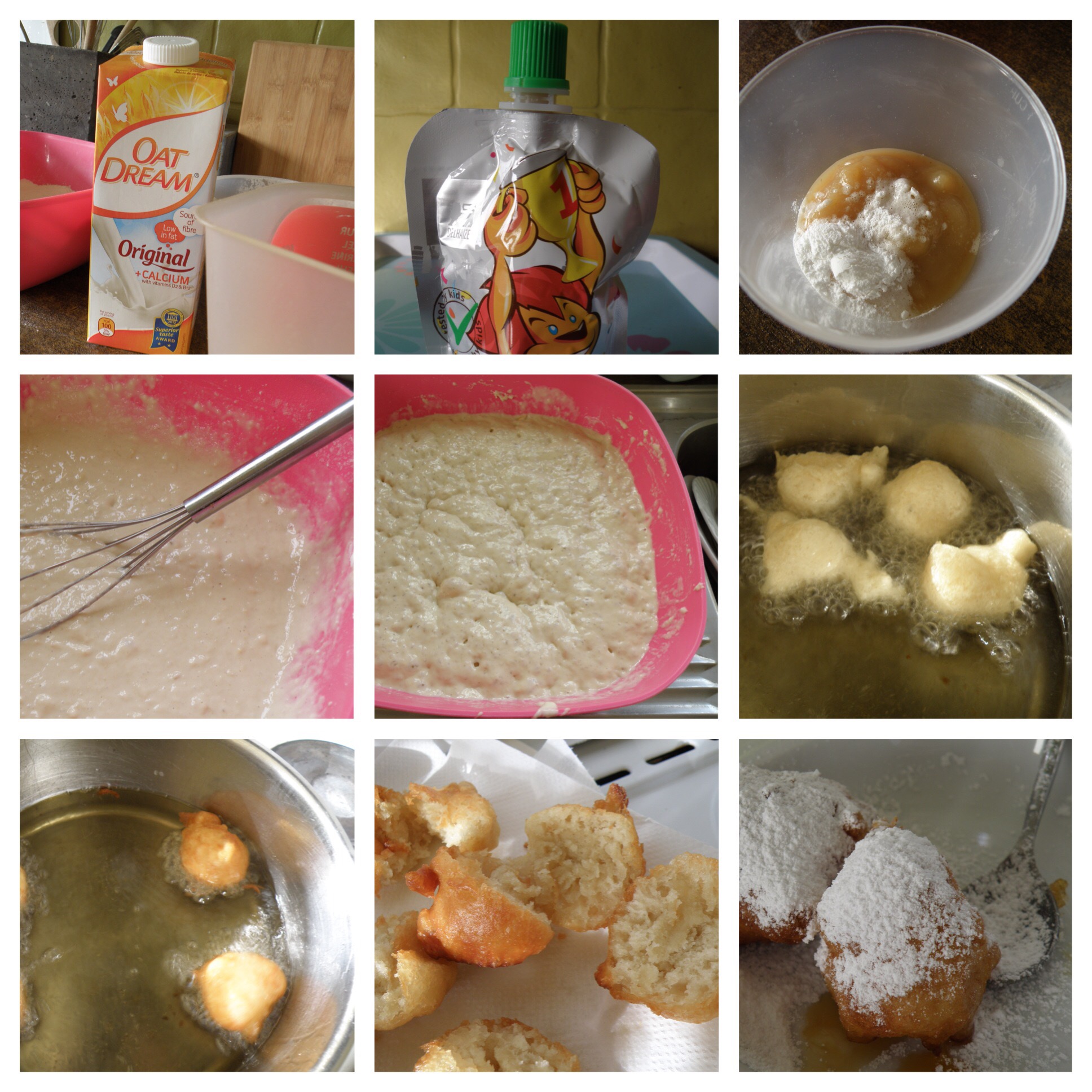Over Christmas and New Year I try and visit a few of the Belgian Christmas markets. It was on one of these visits I discovered the joy that is smoutebollen. Basically a fried yeast risen doughnut that is covered in heaps of icing sugar and is the best thing ever to eat on a cold evening or for a lovely dessert any old time. I was determined to make a version my egg and dairy allergic son can have so I started looking online at different recipes so I could develop one that we could all eat together.