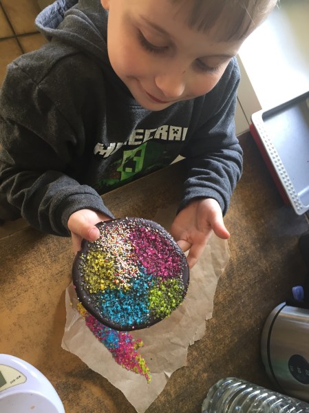 The result was incredibly easy and I know I will make this again and again. He really loves dark bitter chocolate so this was just his thing. For me I think I will add some orange extract or peppermint oil next time to shake things up a little. The possibilities seem endless…